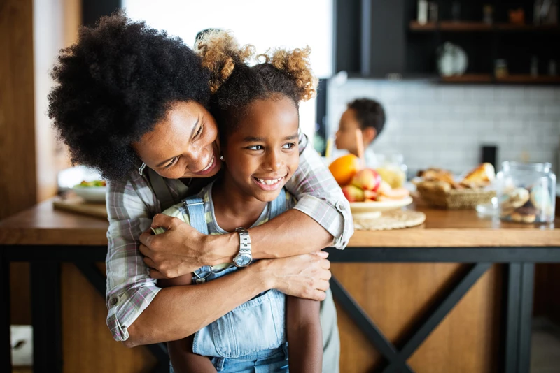 • A mom hugging her daughter