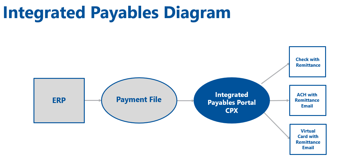 Integrated Payables solutions enable organizations to transition from paper-based workflows to electronic payment methods such as ACH and virtual cards, reducing manual intervention and accelerating payment delivery.
